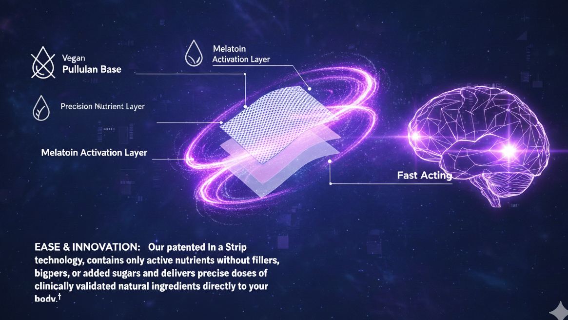 Dissolve on tongue. Drift into deep, restorative sleep in minutes. Wake refreshed, never groggy.